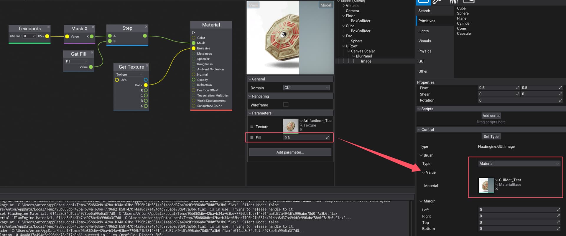 As shown in the image, I created a GUI Material and assigned it to the Material property of a UIControl Image. Now, I don’t know how to access this Material via code in order to manipulate its parameters.
