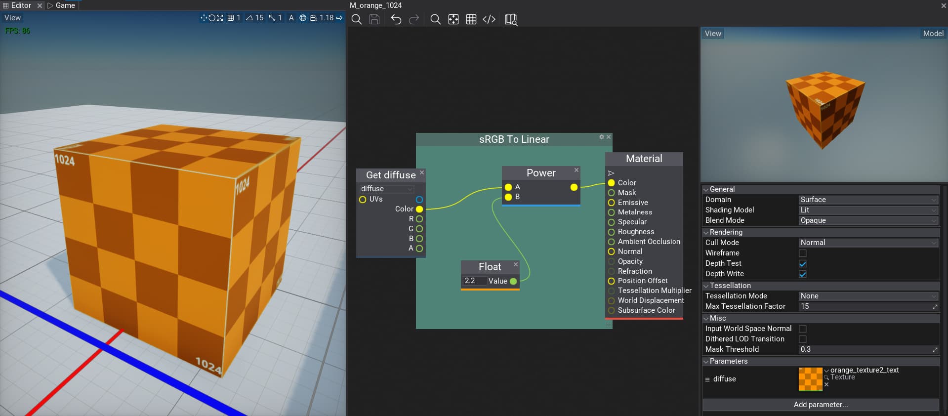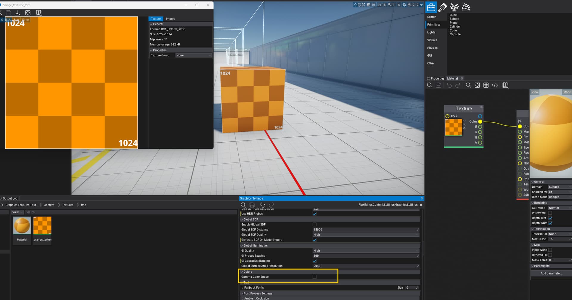 So, back in the Flax Engine, I applied the formula to convert the sRGB color to linear. Now, the output basically matches what I expected to see: