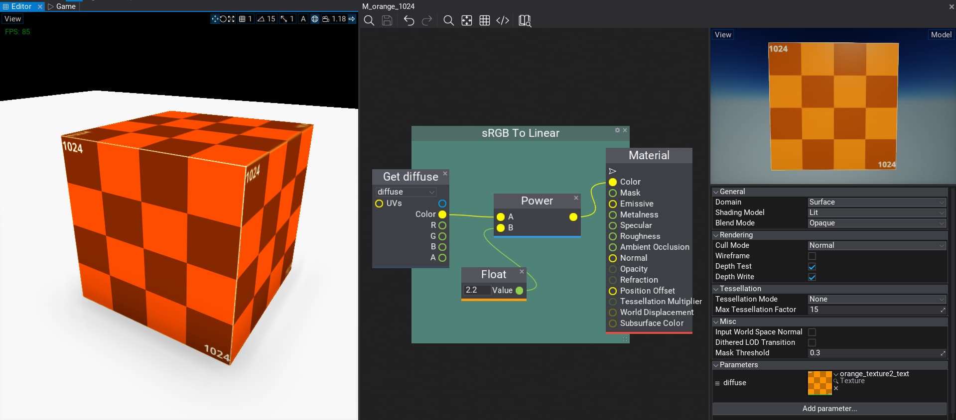 which is pretty much identical to the result I got in the Flax Engine: