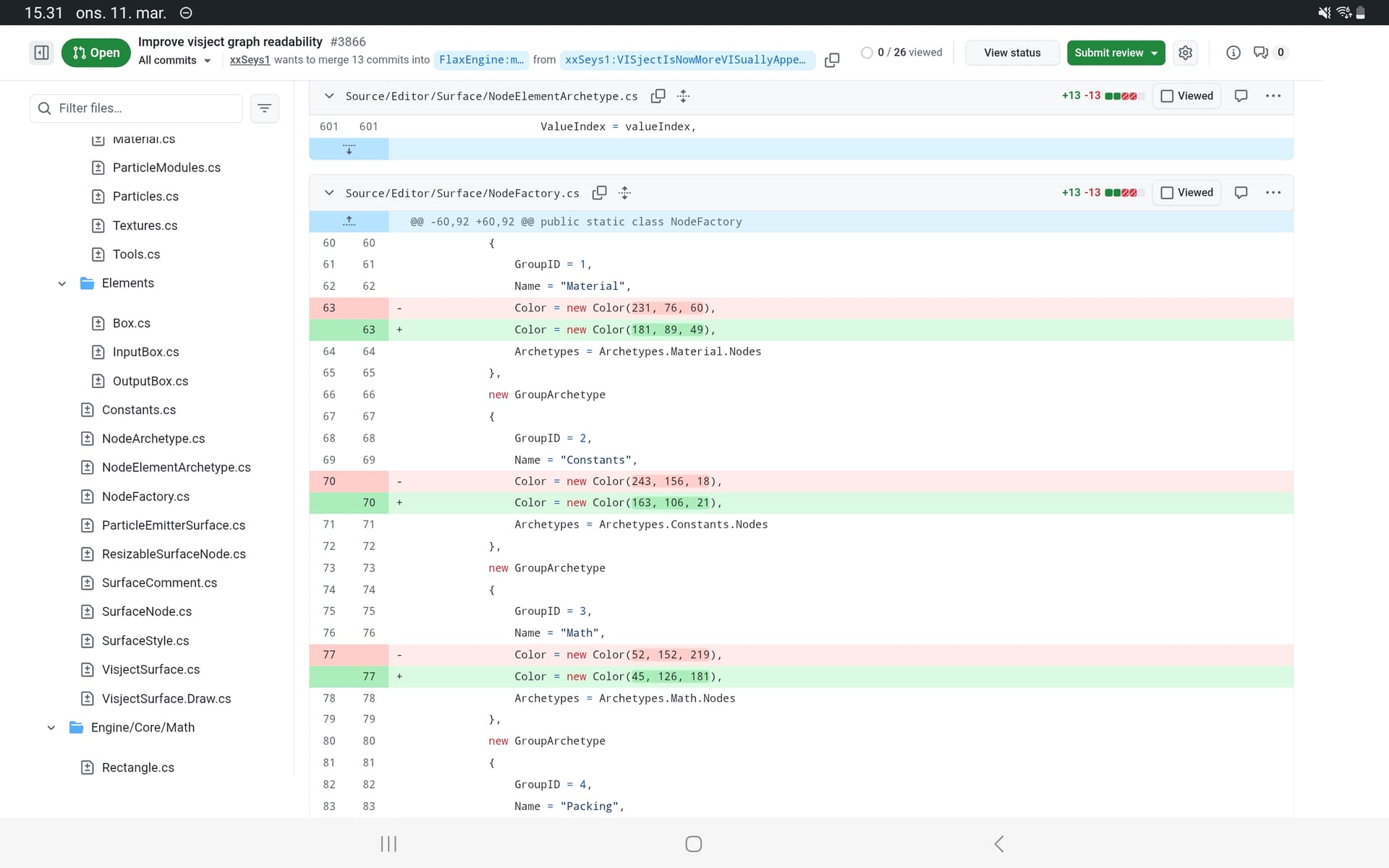 there’s a new suggestion for the program that makes everything in visject look much more colorful