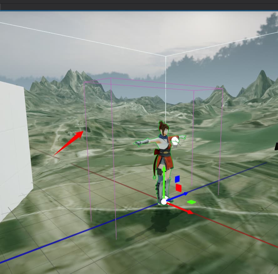 After the character model is imported, what is this purple border? It is much larger than the character. When I use the End key and want the character model to fall on the ground, it will be based on this border.