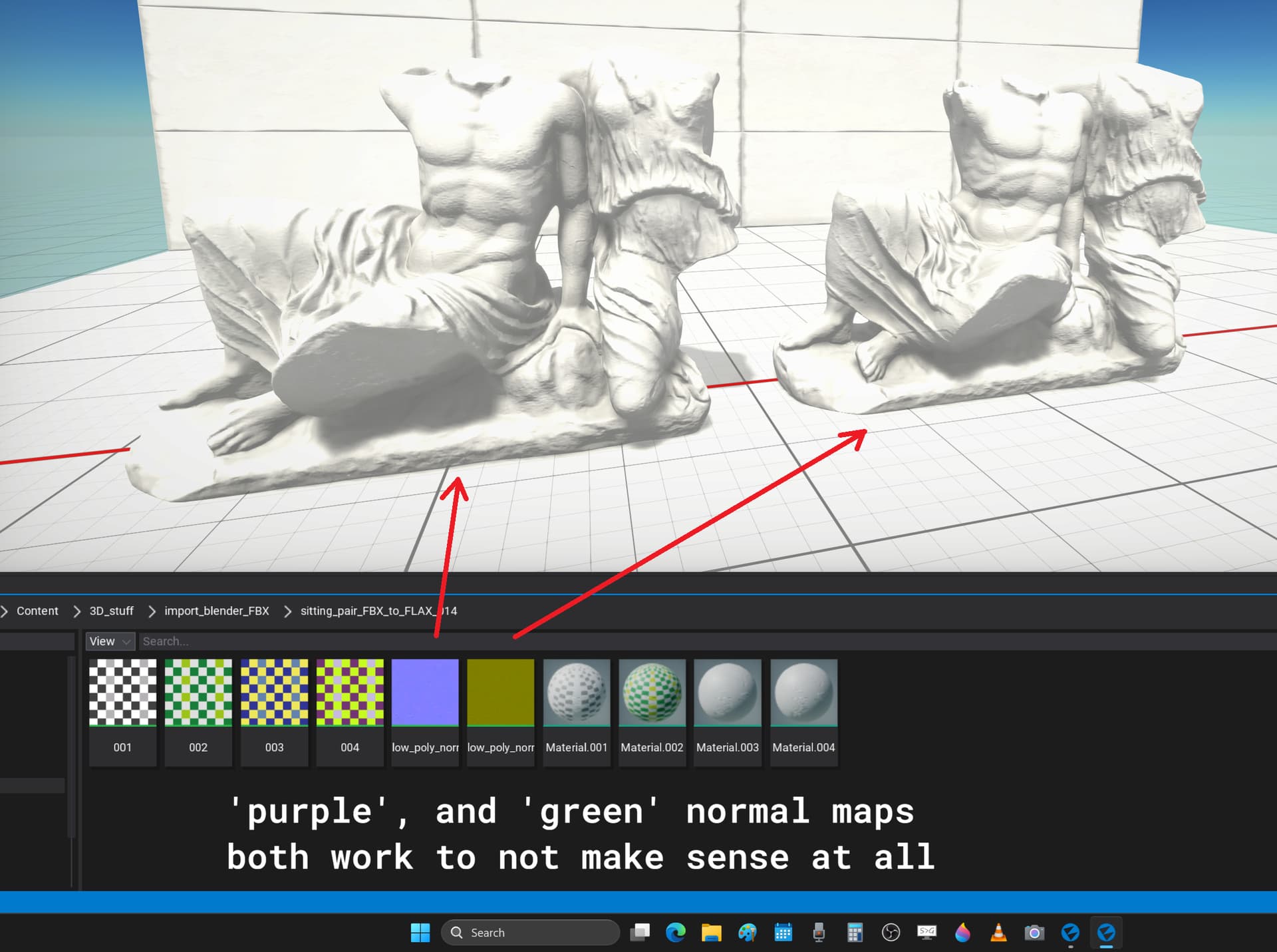 what want to say is that these errors are easy to see when it’s 3D meshes such as sculptures, and except for say simple 2D texture that are quite often used for tiling surfaces it’s rather difficult to remember this, or perhaps to add a setting to ’ auto invent green channel for imported normal maps ', and so one could make that a default setting for instance if people work with Blender, or to make it easier, and also faster to work with the awesome Flax Engine